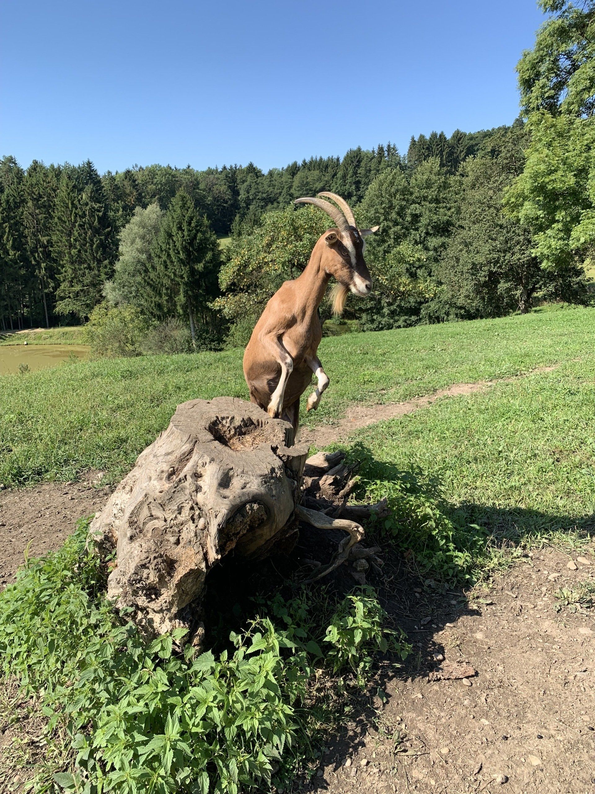 Die Anzahl der Ziegen variiert von Jahr zu Jahr. „Mecki“ die Chefin war seit Anfang an dabei. 2013 kam sie mit „ Cookie“ und „Bocki“ zu uns auf den Hof und wurde 12 Jahre alt. So mancher Obstbaum und Strauch wurde von unserer gefräßigen Truppe vernichtet. Auch so manches frisch gepflanzte Blumenbeet wird gern verspeist, da ist kein Zaun hoch genug.